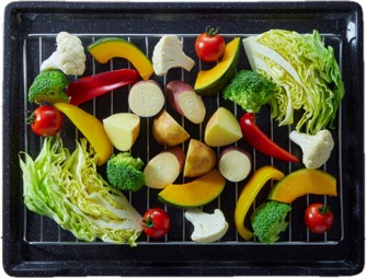 3. を焼網に並べ、取り外したテーブルプレートに置き、中段に入れ026 熱風旨み焼き(野菜)種類ミックス保存状態[常温/冷蔵]または[冷凍のみ]で加熱する。