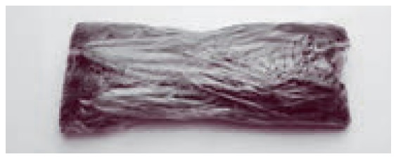 茎と葉を交互にして重ね、ラップでしっかりと包みます。
