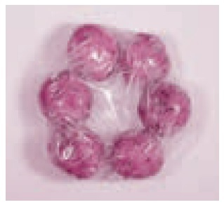 小房に分け、重ならないようにし、ラップの上にすき間を作らないように並べて、ピッタリと包みます。