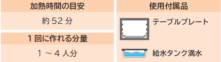 3. 食品を入れずに過熱水蒸気オーブン予熱有150℃20〜30分で予熱する。