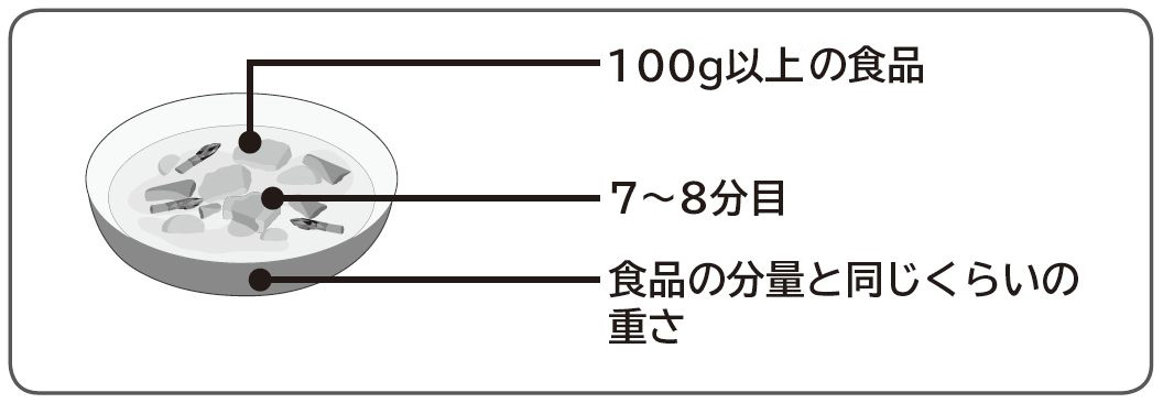 - ■食品の分量と容器の重さを同じくらいにしてください