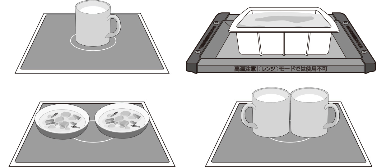 - 2個以上を同時にあたためる場合は、テーブルプレート中央に寄せて置きます。