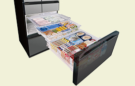 庫内が広いと中身が見渡しやすく、食品が探しやすくなります。ドアを開けている時間も少なくなり、省エネになります。
