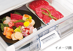 肉・魚などの生鮮食品を凍らせない約-1℃で鮮度を守り、おいしく保存します。