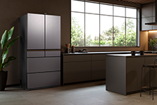 ゆとりの大容量670Lで、奥行スリム65.4cm。キッチンからの出っ張りが少なく、すっきりフラットに置けるほか、さまざまな使いやすさが充実しています。