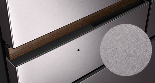 ランダムな円弧を描き研磨したバイブレーション仕上げを施したような高品位な鋼板を採用。周囲が柔らかに映り込む、マットで落ち着いた光沢を生み出すことにより、上質感を演出します。