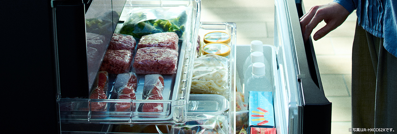 ※当社調べ。冷蔵庫の使用状況や、食品の種類・状態・量・包装状態などによって、効果は異なります。*3*4
