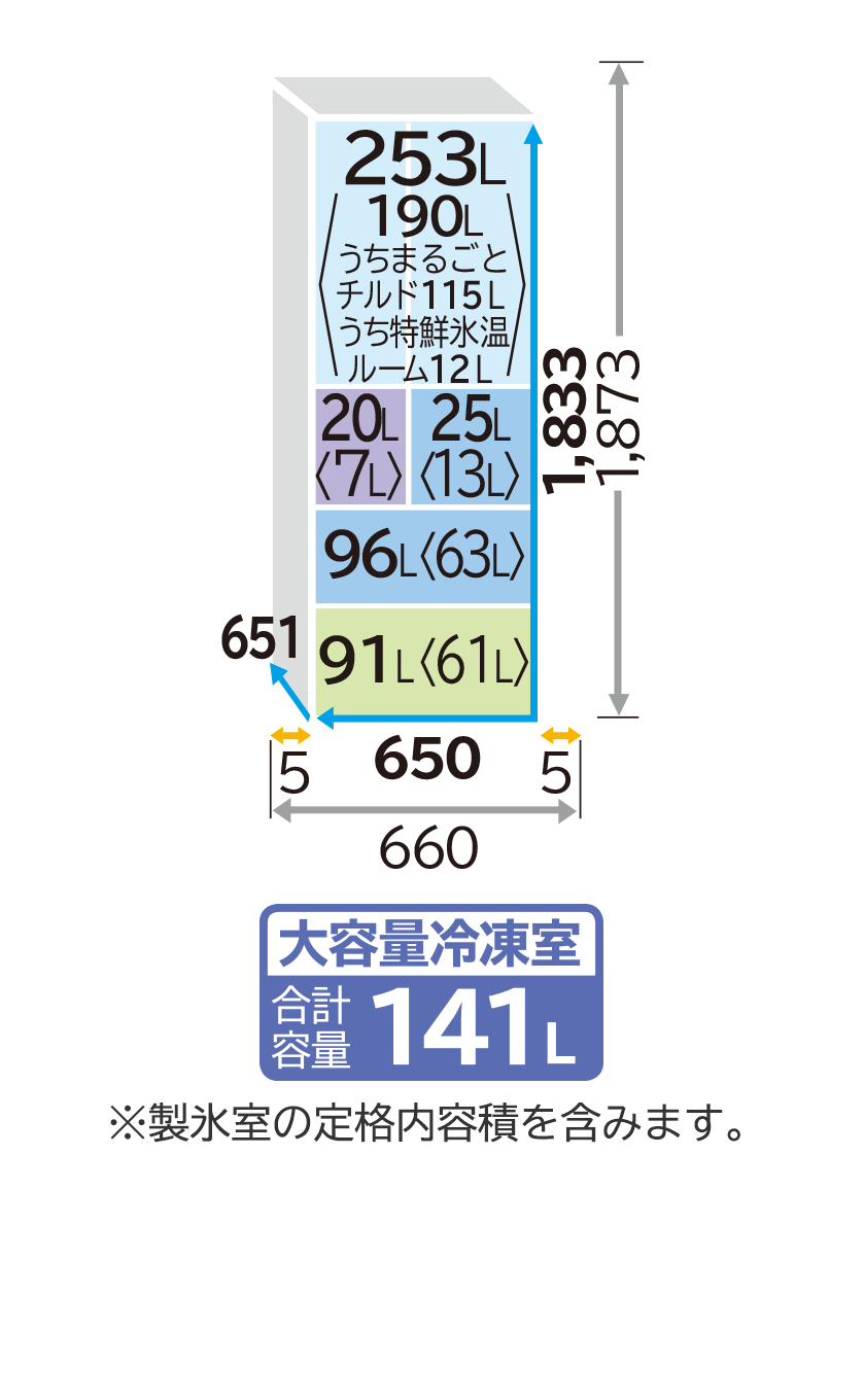 定格内容積 485L |
