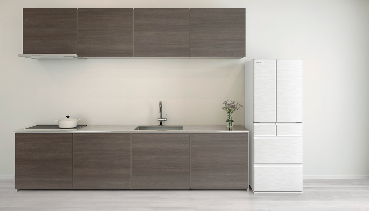 インテリアになじみやすいシンプルでフラットなデザインを採用。ヘアライン調の鋼板ドアで、高い質感を表現しました。