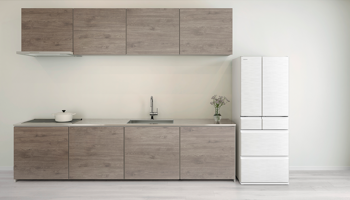 インテリアになじみやすいシンプルでフラットなデザインを採用。ヘアライン調の鋼板ドアで、高い質感を表現しました。