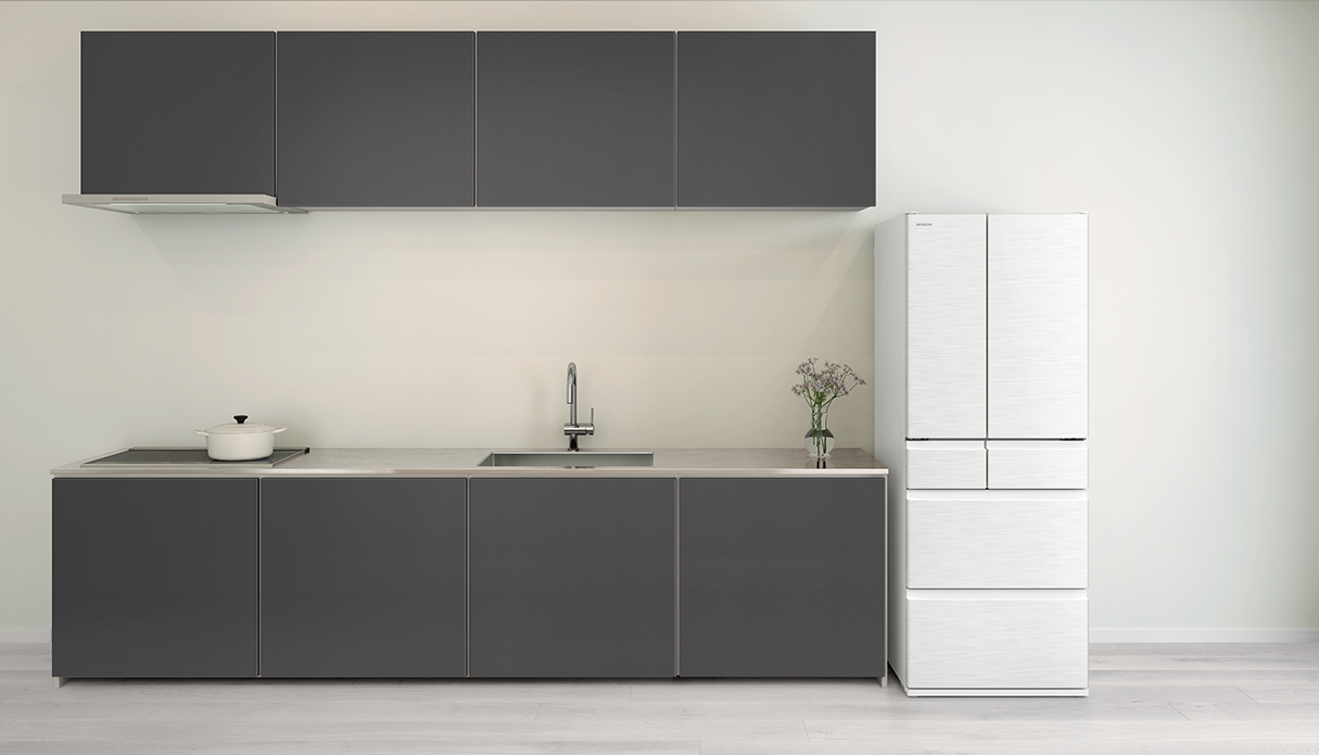 インテリアになじみやすいシンプルでフラットなデザインを採用。ヘアライン調の鋼板ドアで、高い質感を表現しました。