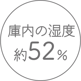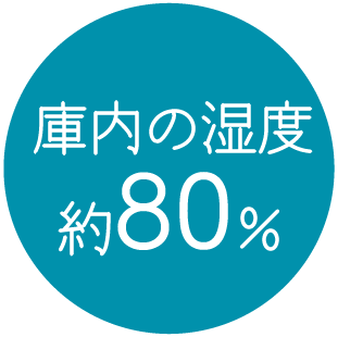 冷蔵室内に送る冷気の除湿量を抑え、水分をたっぷり含んだうるおい冷気で冷蔵室内の湿度低下を抑制し、食品の乾燥を抑えます。
