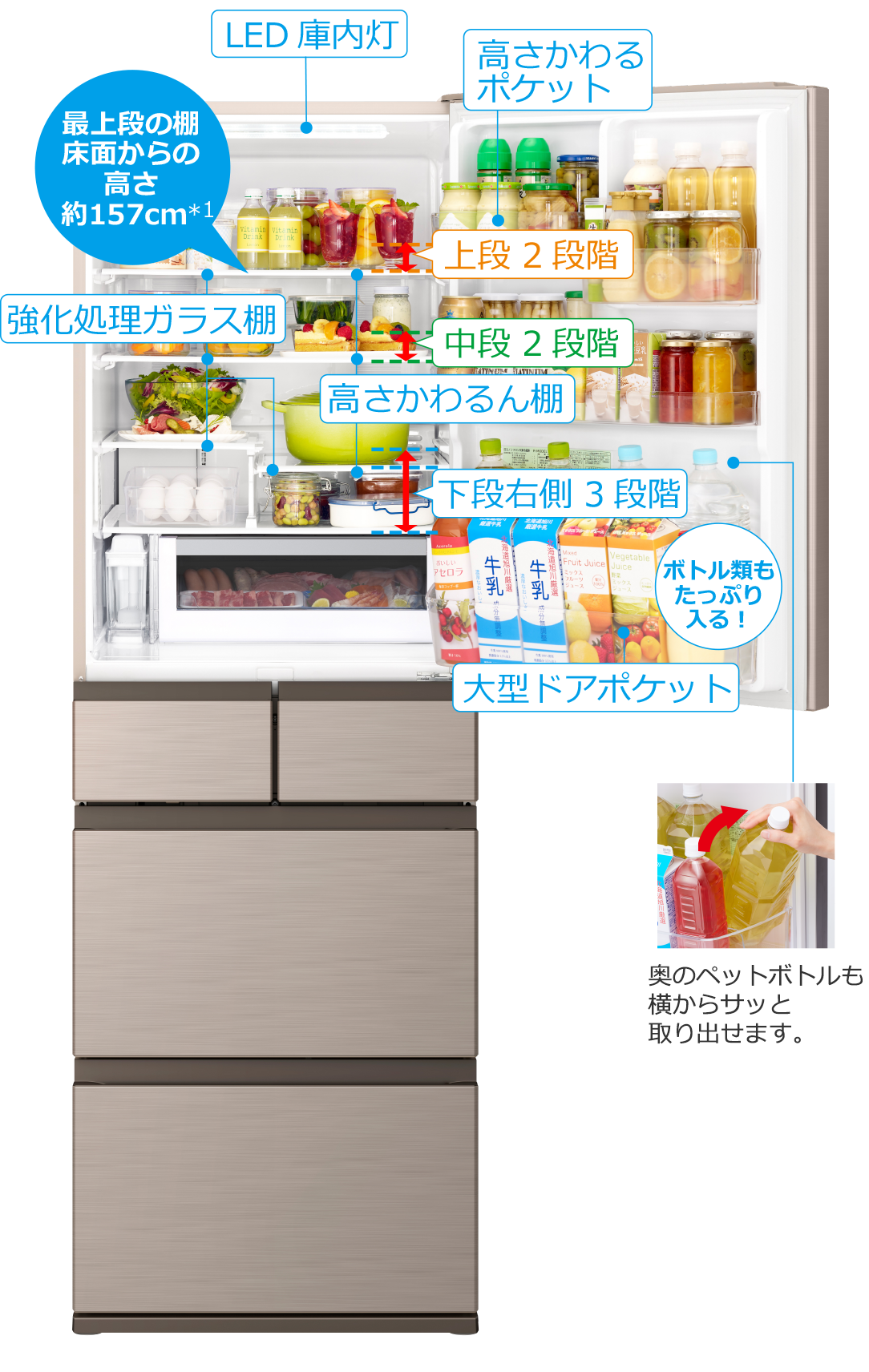 *1 棚の高さを2段階設定できるうち、下の段に設定した場合。