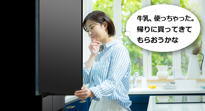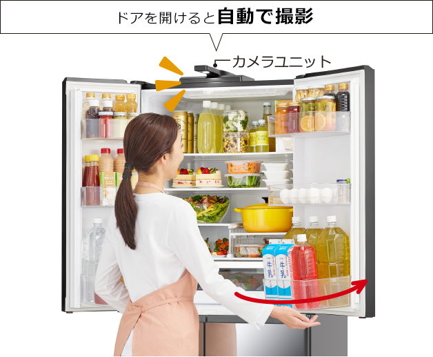 冷蔵庫カメラなら、ドアを開けなくても冷蔵室の中の食品が確認できるので、ドア開閉の回数が低減できて、冷気の流出を抑えることができます。