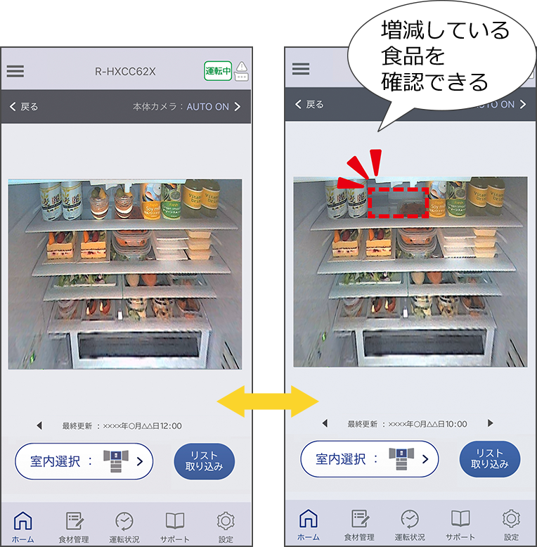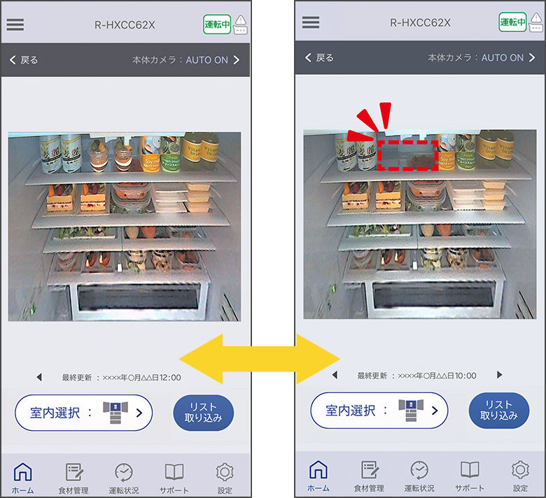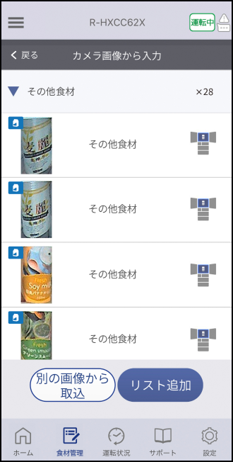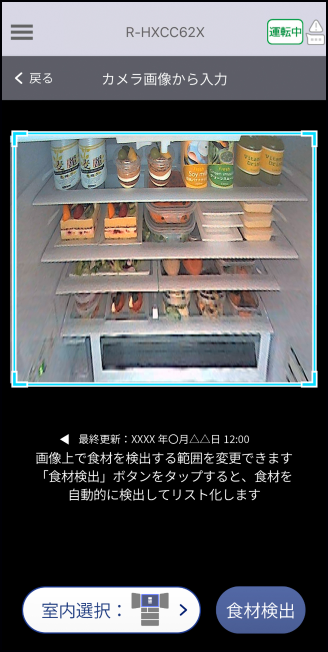 冷蔵庫カメラの画像を活用して、食材画像を自動でリスト化します。
