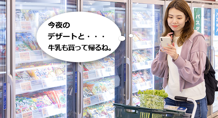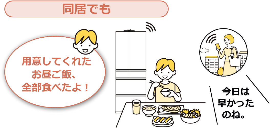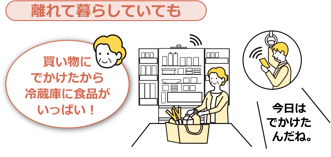 撮影した画像から、食品が増えたり減ったりする状況が確認できます。普段の冷蔵庫内から判断できるので、ご家族にさりげない見守りができます。