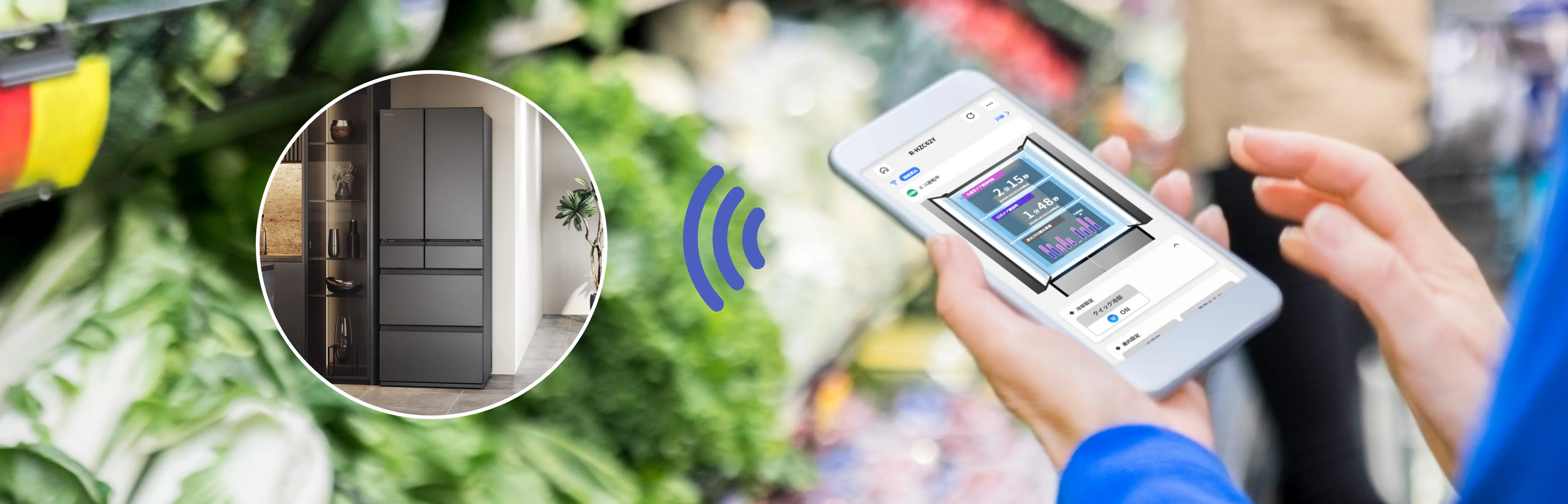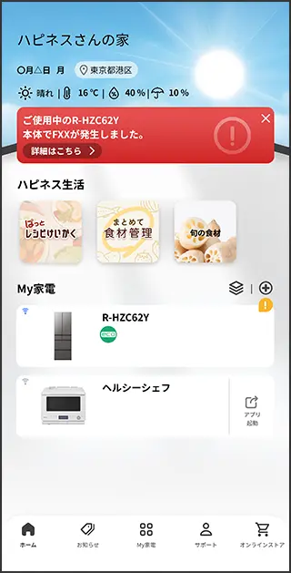 ※ 2026年モデルR-HZC62Y・HZC54Y・HWC62Y・HWC54Y・HWC49Yは「ハピネスアップ」で連携します。それ以外の対応機種は「日立冷蔵庫コンシェルジュアプリ」と「ハピネスアップ」を併用してお使いください。「日立冷蔵庫コンシェルジュアプリ」について詳しくはこちら