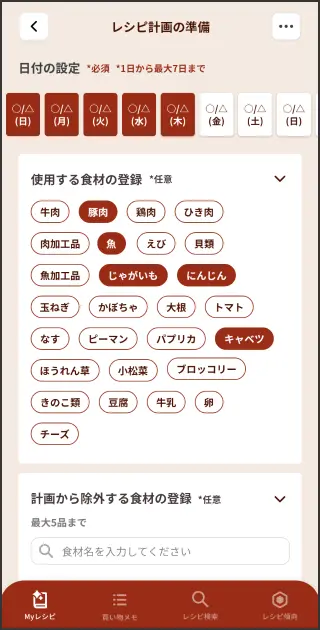 日付・食材の登録