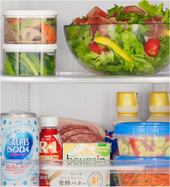 チルド食品や作り置きも鮮度よく保存。飲み物などの常備品も、冷やしながらストックできる。