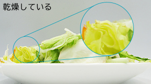 また、冷気の除湿量を抑えて、水分をたっぷり含んだうるおい冷気で庫内の湿度低下を抑制し、食品の乾燥を抑えます。
