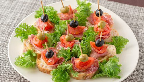 クリームたっぷりのケーキや、きれいに盛り付けたサラダやオードブルも