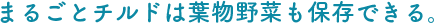 小松菜やキャベツなどの低温保存に向いている葉物野菜の保存ができます。約2℃*2の低温だから、野菜の呼吸活動が抑えられるので、ビタミンCが守られます。