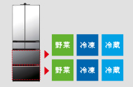 「まんなか野菜」で野菜の出し入れを、もっとラクに、便利に。さらに暮らしの変化に合わせて、「まんなか冷凍」にも「どっちも冷凍」にもできる。今の使いやすさも、この先の使いやすさも、どちらも大切にしたい日立の冷蔵庫です。
