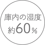 冷蔵室内に送る冷気の除湿量を抑え、水分をたっぷり含んだうるおい冷気で冷蔵室内の湿度低下を抑制し、食品の乾燥を抑えます。