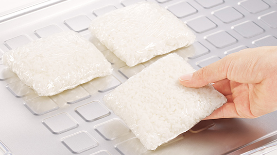 温かいごはんなどを入れたときは、専用の温度センサーが食品の温度を検知し、自動で運転を切り替え、すばやく冷凍します。