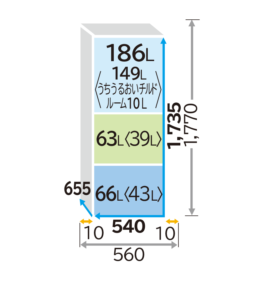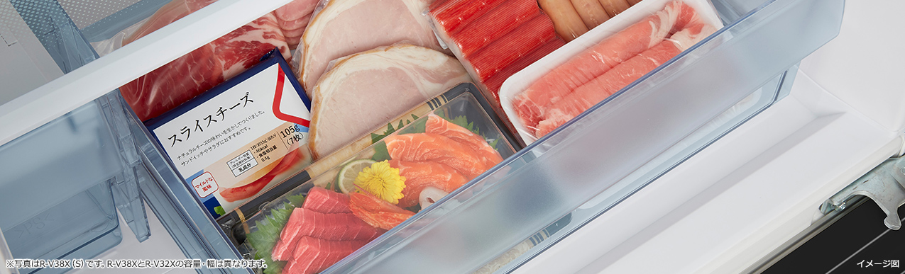 ※写真はR-V38X(S)です。R-V38XとR-V32Xの容量・幅・奥行は異なります。