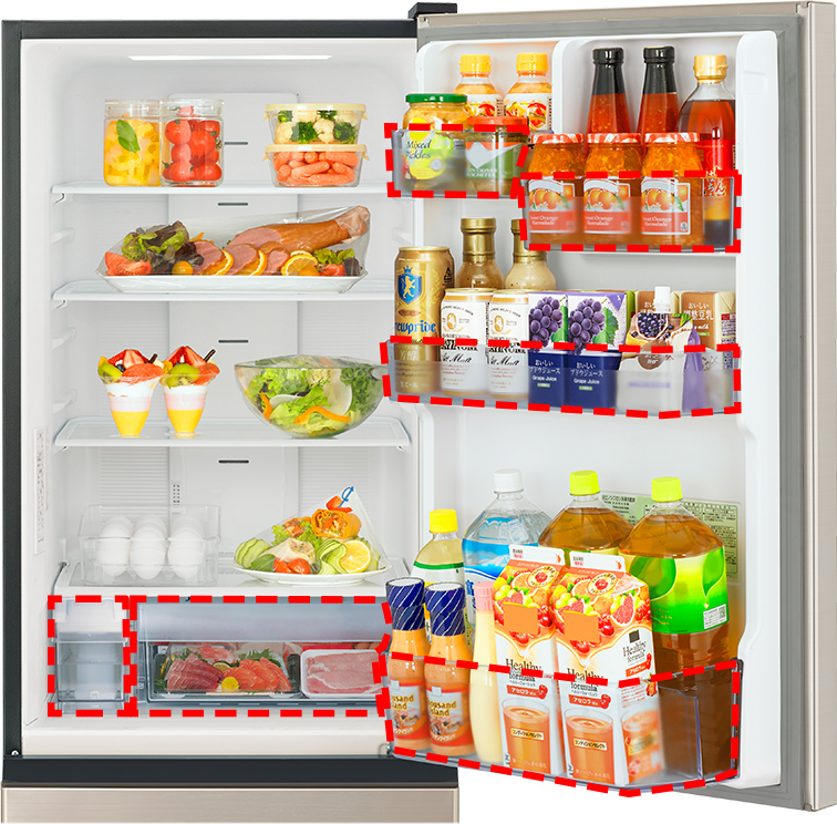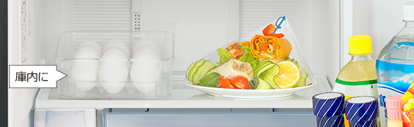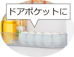 よく出し入れする卵や小さな食品をまとめて、冷蔵室の棚のお好きな位置に入れられる。