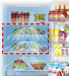 冷蔵室2・3段目の冷気の風量を一定時間増やすことで、食品を早く冷却します。