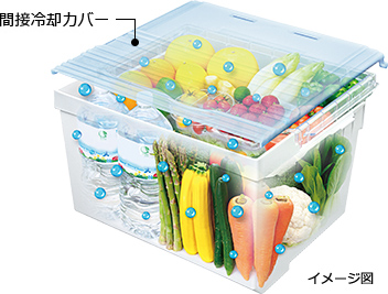 冷気を直接あてない間接冷却で、野菜の乾燥を抑えながら保存します。[間接冷却カバー]で、野菜から出る水分を野菜室内に閉じ込めます。