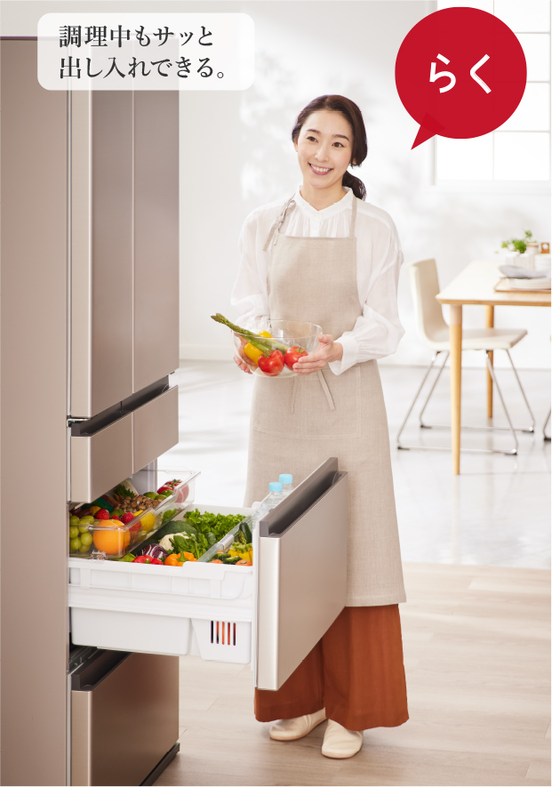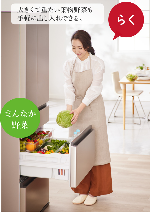 野菜をらくに出し入れできて使いやすい。さらに[新鮮スリープ野菜室]採用で、鮮度を守って保存できます。