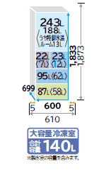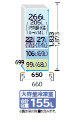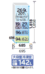 | 冷凍冷蔵庫 [片開き3ドア] |