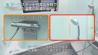 サーモスタット付混合水栓で設定した温度のお湯が出ない(34秒)