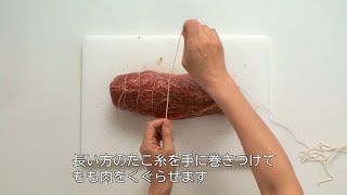 たこ糸で肉の形を整える(ローストビーフ)(4分00秒)