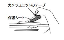 ご購入時はカメラユニットにテープ、保護シート、保護カバー※1がついていますので、初めてカメラ機能を使う場合は取りはずしてください。