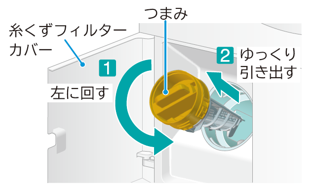 ●糸くずフィルター内部にたまった糸くずが洗濯機内部に落ちないように注意してください。