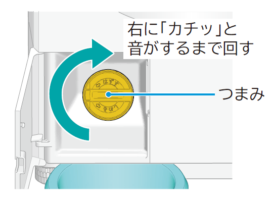 つまみを右に「カチッ」と音がするまでしっかり回す