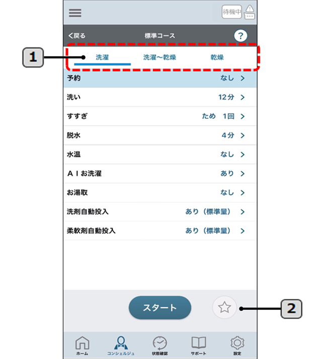 ・運転を開始するためには、洗濯機を遠隔操作待機状態(リモート状態)にする必要があります。