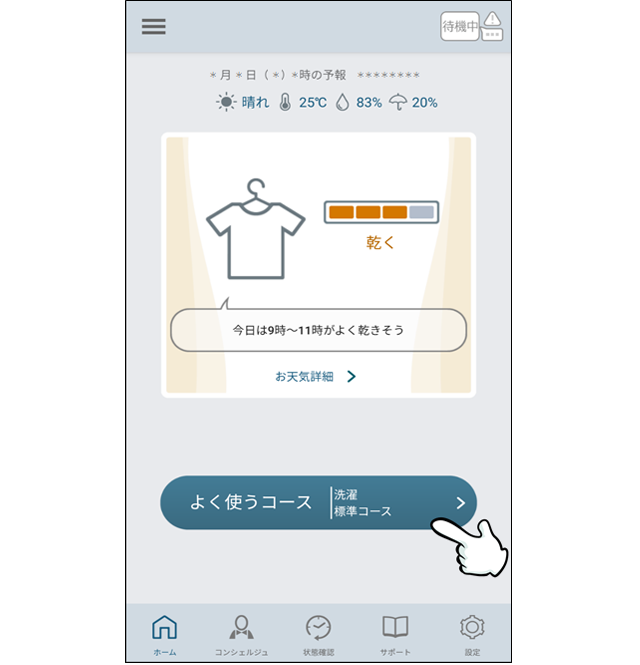 お好みのコースをよく使うコースに登録すると、ホーム画面から素早く運転を始めることができます。