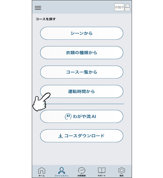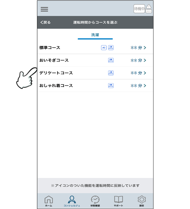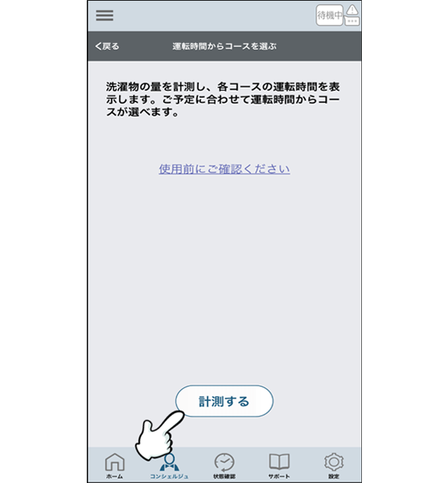 洗濯物の量を計測し、各コースの運転時間を表示します。