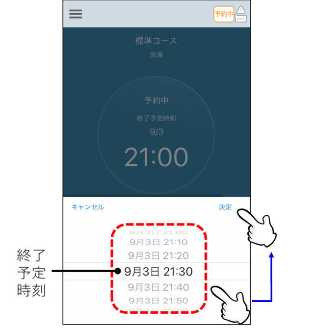予約した運転の終了予定時刻を設定可能な範囲で変更することができます。