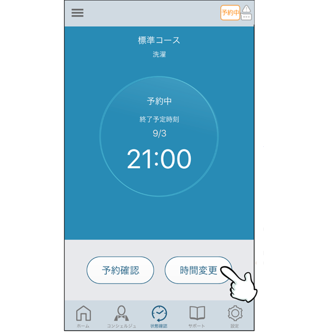 予約した運転の終了予定時刻を変更するには、洗濯機を遠隔操作待機状態(リモート状態)にする必要があります。→遠隔操作待機状態(リモート状態)にする