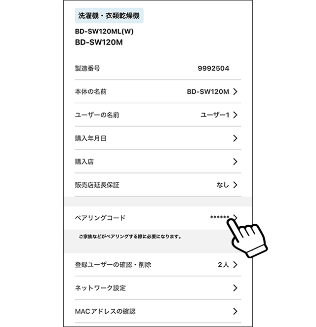 ペアリングコードが分からない場合は洗濯機の登録情報の全消去(初期化)を行ってください。登録情報の全消去を行うと今までペアリングした情報が洗濯機から削除されます。 →登録情報の全消去(初期化)