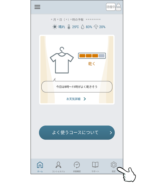 設定を変更するためには、洗濯機を遠隔操作待機状態(リモート状態)にする必要があります。