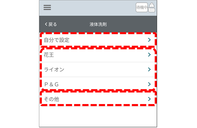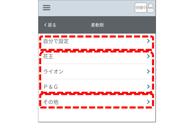 液体洗剤・柔軟剤の銘柄を選択するだけで使用量とすすぎ回数も自動設定することができます。