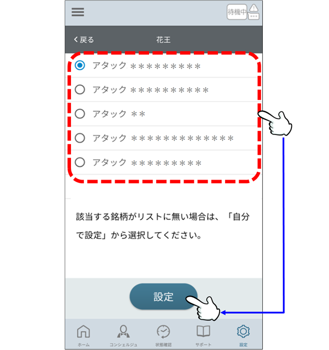 該当するメーカーがリストに無い場合は、「自分で設定」または「その他」をタップしてください。