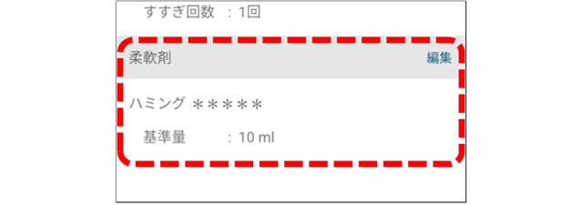 選択した「柔軟剤の銘柄」から、基準量を自動設定します。